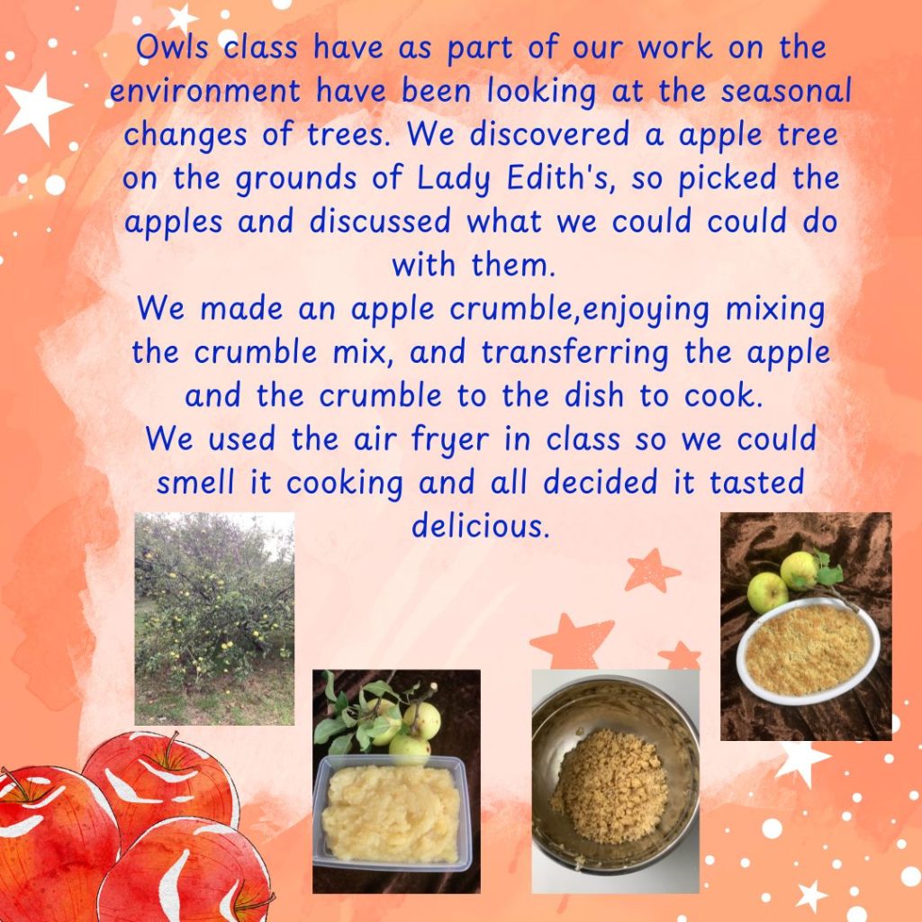 Students in the Eagles Class have the opportunity to cook their own lunches. This is on a rota basis.